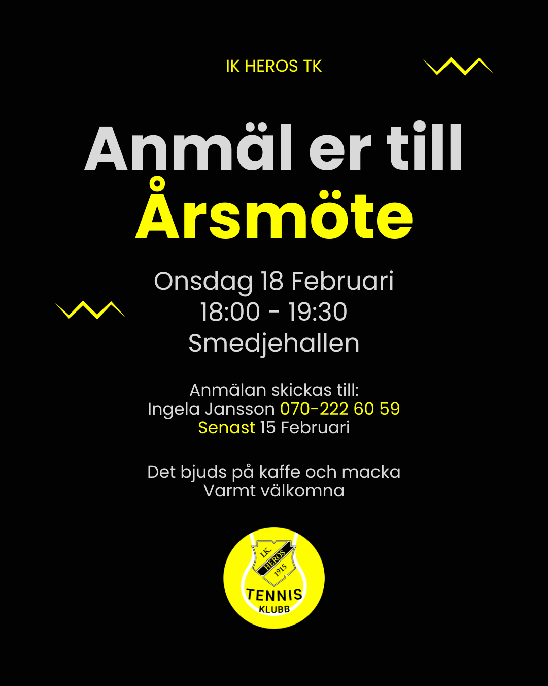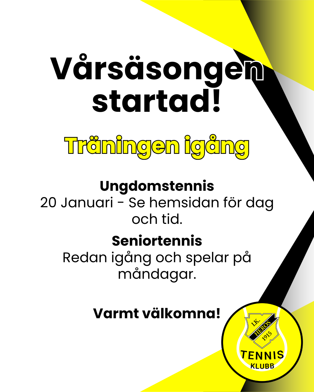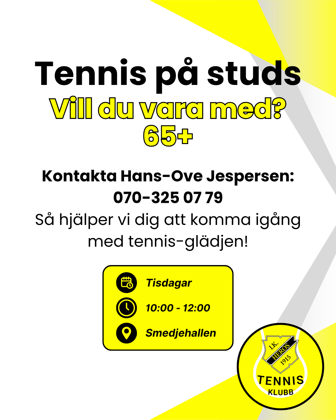 Tennisklubben har träning för dam/herr, barn/ungdom och seniorer 65+. Intresserad av att ingå i någon träningsgrupp? Kontakta gärna Tennisklubben via mail: herostennisklubb@gmail.com